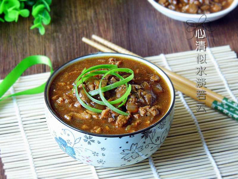 11:兑入开水,煮沸,水量淹没肉末,熬煮约30分钟,根据自己喜好调入盐。