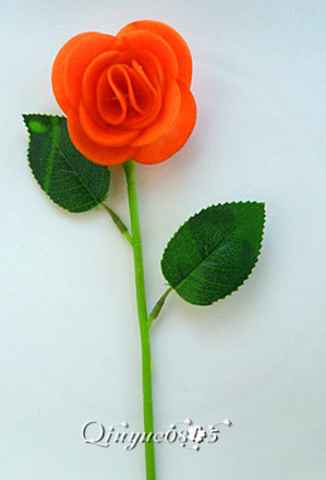 15:穿好后,稍微整形,让它成一朵盛开的玫瑰花的样子。