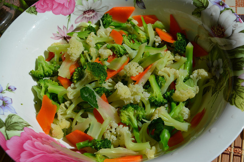 胡萝卜50g;西兰花150g;白菜花150g;