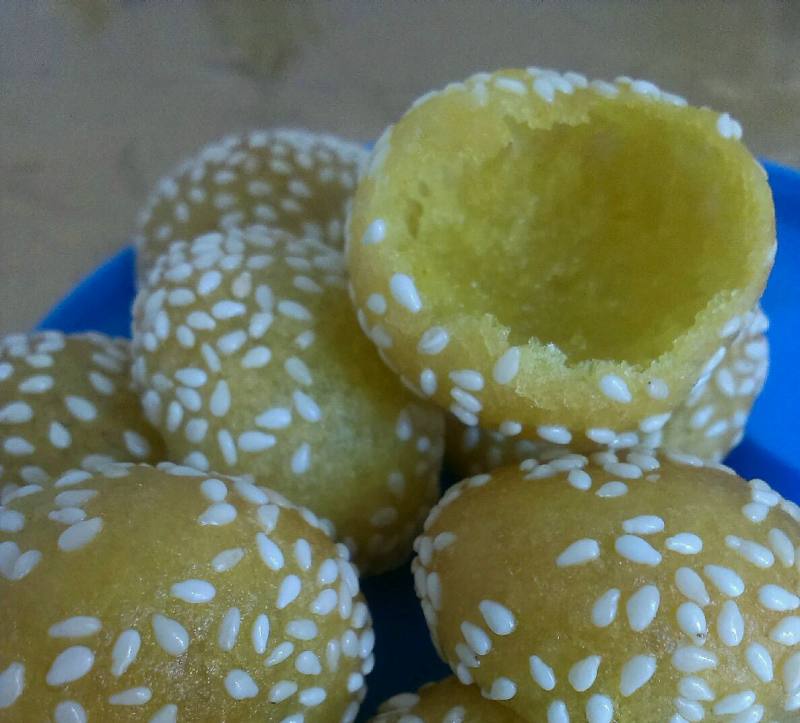 9:刚出锅的南瓜球,外皮香脆,里层软Q,而且是空心的。冷了也保持原形。