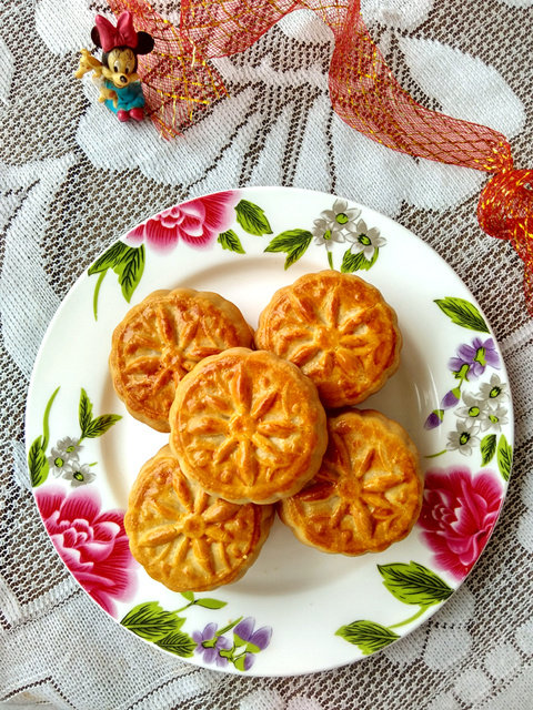 黄油需融化后使用。核桃仁需事先炒熟或烤熟。烘烤时间与火力需根据烤箱实际情况及月饼大小多少酌情调整。刚烤好的月饼较为干硬,待存放至回油后口感最佳。