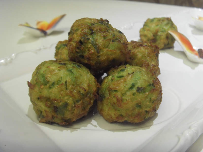 3:把萝卜肉馅儿团成一团一团的放入热油中,大火定型。