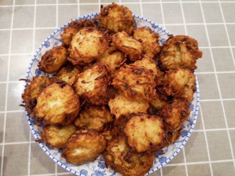 18:待丸子炸至金黄色,浮在油面上时,捞出即可。