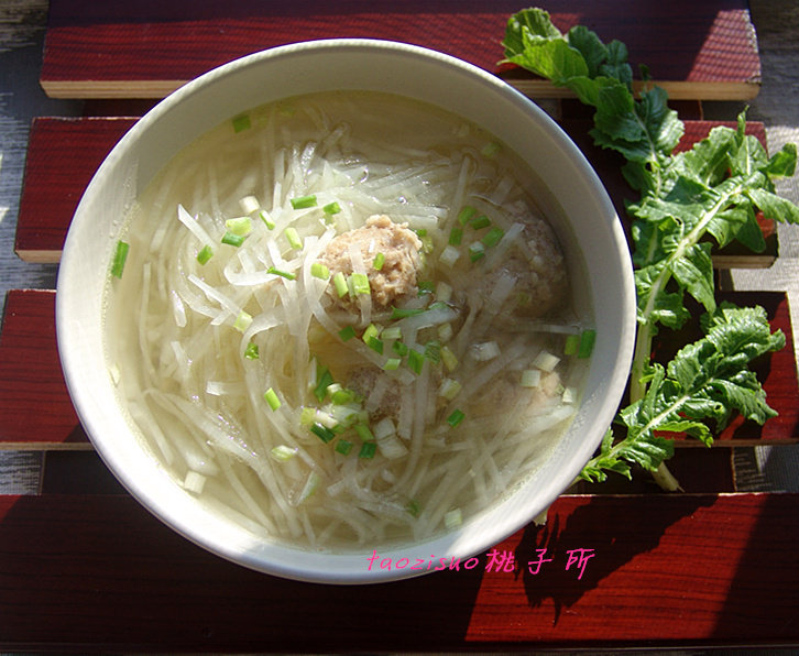 偏瘦猪肉馅250克;白萝卜1根;生抽适量;鸡汤块适量;香油适量;鲜姜适量;