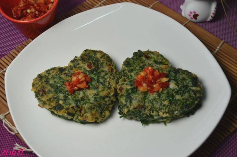 荠菜(焯水)77g;荞麦小麦粉40g;鸡蛋1个;