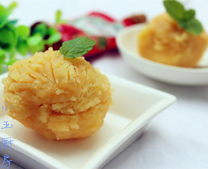 4:趁热用勺子压成土豆泥,放凉备用。