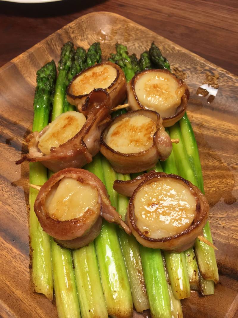 培根卷3片;北海道大带子6个;