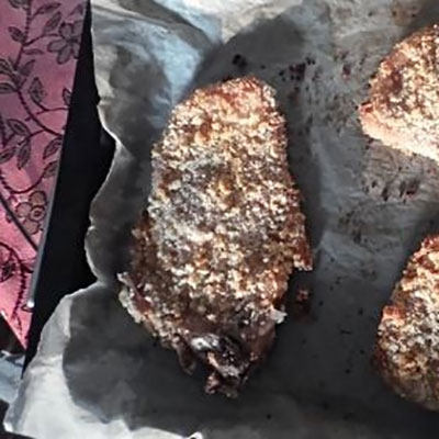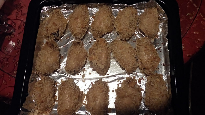 3:将糟卤水倒掉,沥干,鸡翅外面拍上面包粉。
