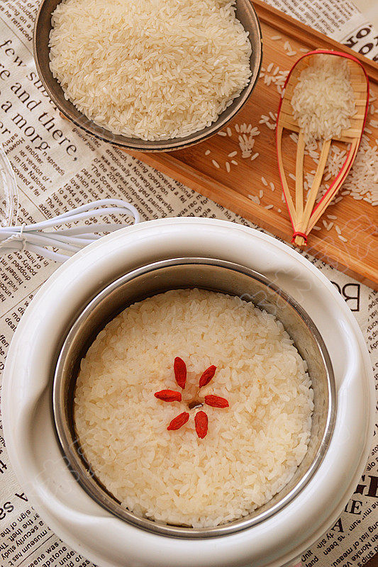 1:糯米洗净后,用凉水提前泡发12个小时,能用手一捏就碎时即可上锅蒸制
