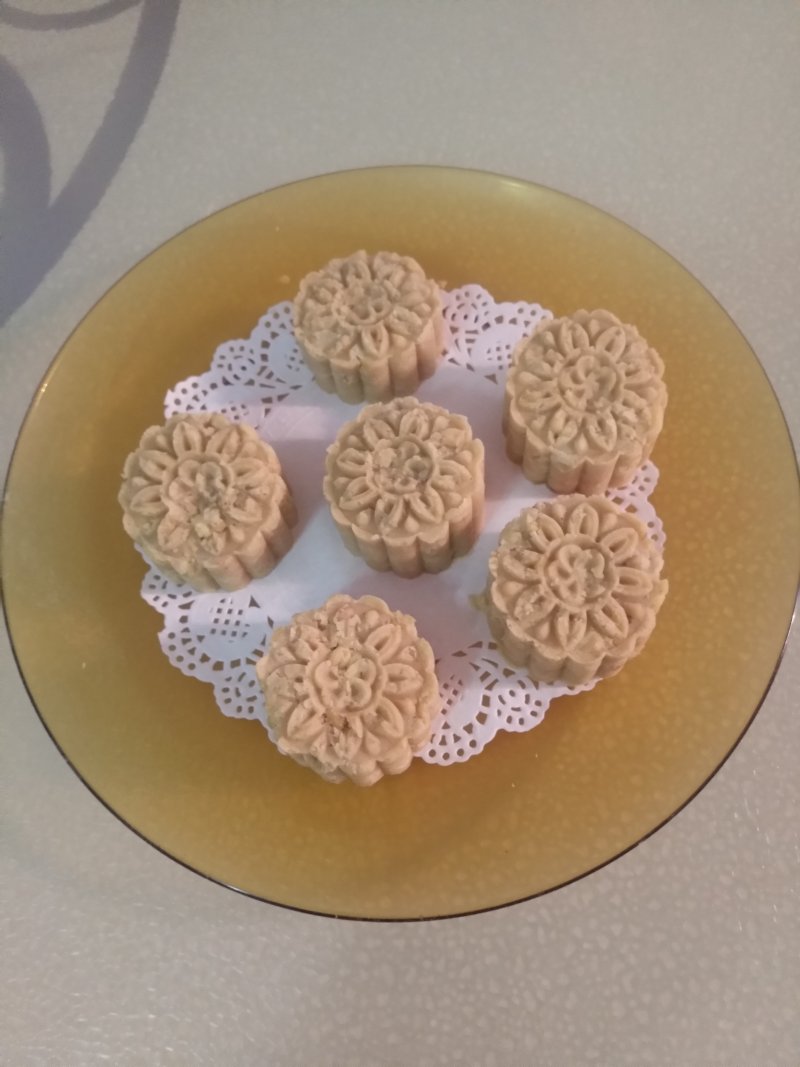 1.绿豆沙烘焙小火炒后,凉一些更容易成型,热的时候不易成型,但是也不要太凉哦,否则太干硬了.