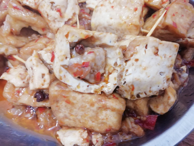 2:豆腐是自己做的,用勺子,抹一层豆腐做皮。