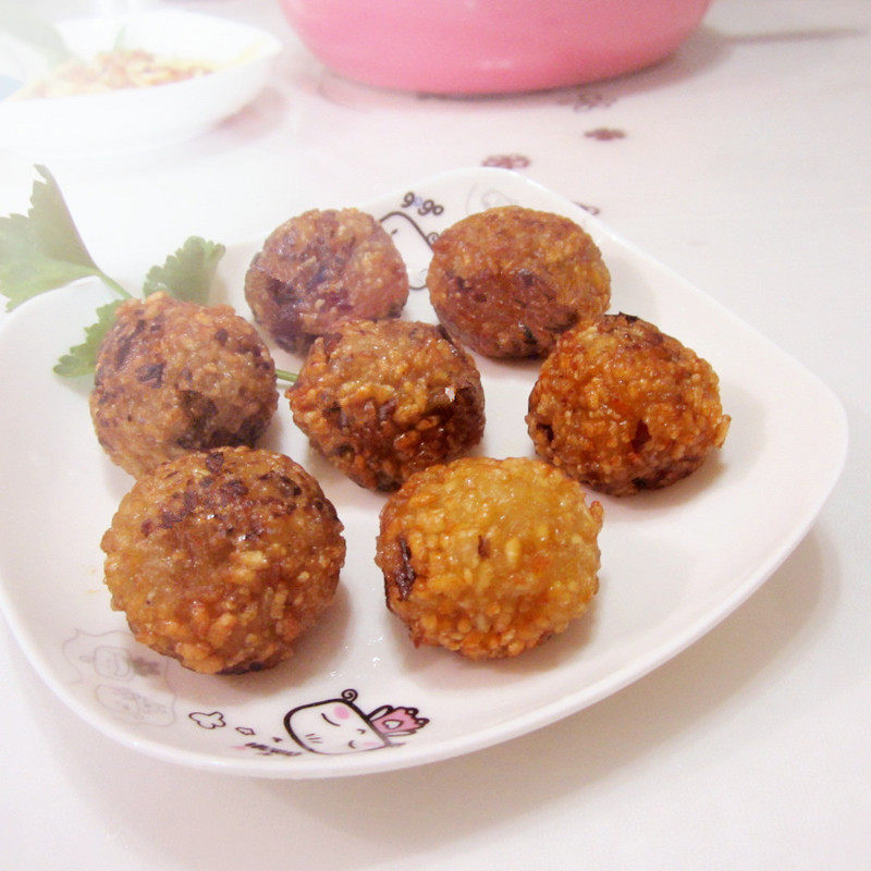 1.最好用不粘锅炸制;2.五成热的油温可以用竹筷子来测试,当筷子放到油锅里筷子的周围冒小气泡时,就表明达到这个温度了,这时就可以炸制了;3.由于添加了糯米粉所以小孩和老人尽量少吃;