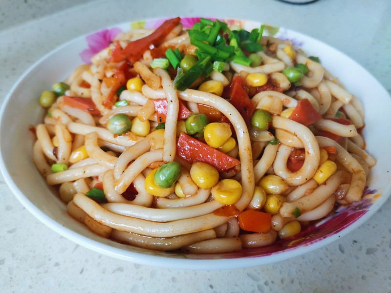 胡萝卜一点;青豆一把;火腿肠一根小的;玉米粒一把;