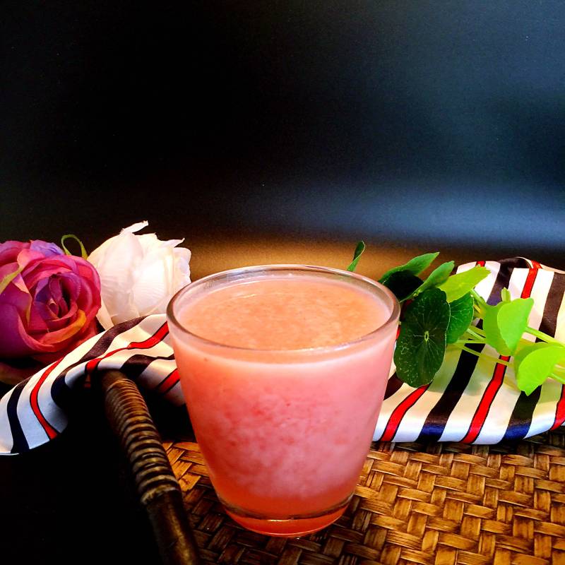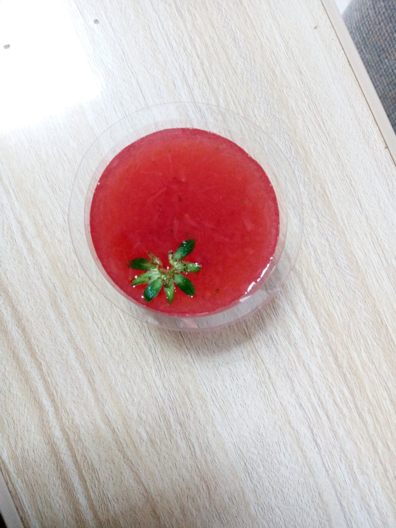草莓这个水果本身的含水量相对西瓜来说比较少。草莓汁糯糯的。也是别有一番风味哦。