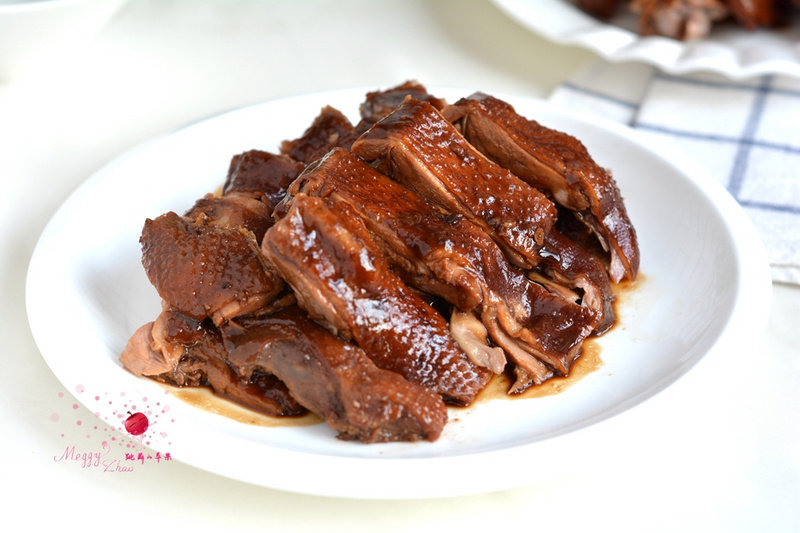 没有麻鸭,用其它鸭子也可以,只是超市的西洋鸭太肥,肉太松,做出的酱鸭口感不结实,鸭味儿不够;调料可以根据自家现有的来放,这些调料在超市或者中药房都有售;最后的半小时不要嫌麻烦,不停地将汤汁浇在鸭身上,利于上色;留一点汤汁浇在斩块的鸭肉上,更利于入味儿;如果觉得时间有些长,可以先放在高压锅里焖一下,再取出来收汁上色。