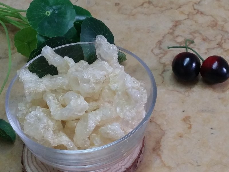 炸猪皮15克;木耳10克;
