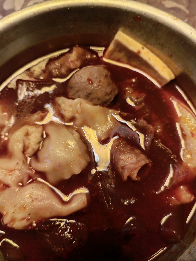 牛肉5片;牛肉丸5个;红薯粉10块;香豆腐5块;馄饨5个;