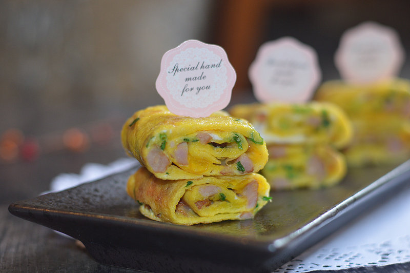 鸡蛋3个;火腿2根;