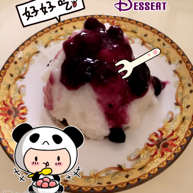 3:尒水,摆盘。挤上蓝莓酱!大功告成!