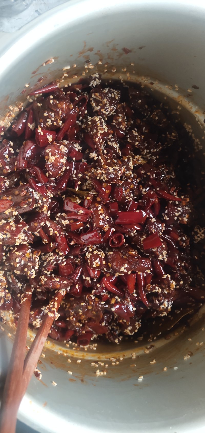干海椒7克(可根据自己的口味增加用量);葱2根;白芝麻5克;冰糖10克(白糖);