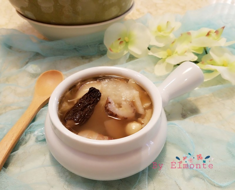 海参2条,发好的;花胶粒5个;瑶柱10粒;冬菇3个;羊肚菌10来个;淮山6片;莲子手抓1把;百合手抓1把;咸肉半块(金华火腿最好);