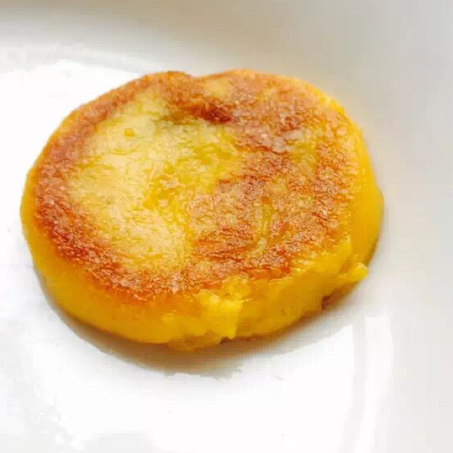 6:热锅放适量油,放入南瓜饼小火煎至两面金黄色即可。