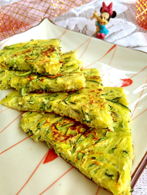 1:用料:嫩南瓜250克,鸡蛋1个,面粉2大勺,盐少许,花椒数颗