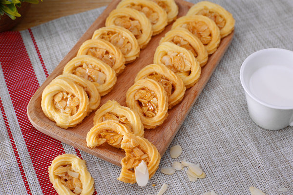 黄油40克;蛋白30克;盐1克;糖粉20克;杏仁片35克;