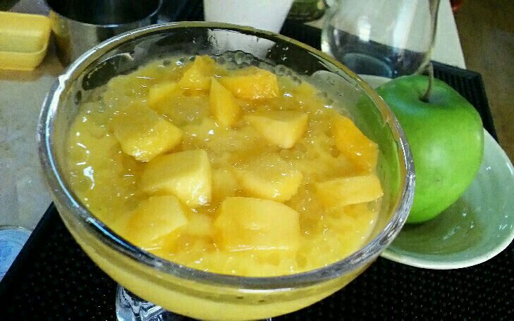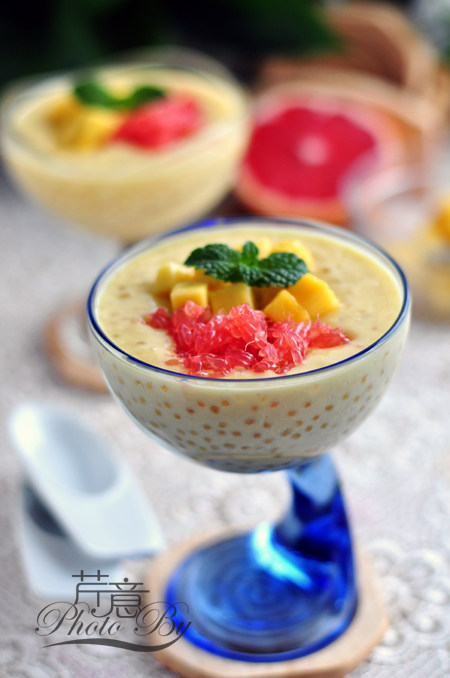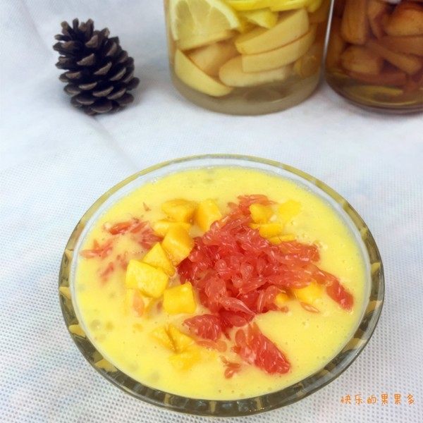 芒果3个;西米100g;西柚半个;