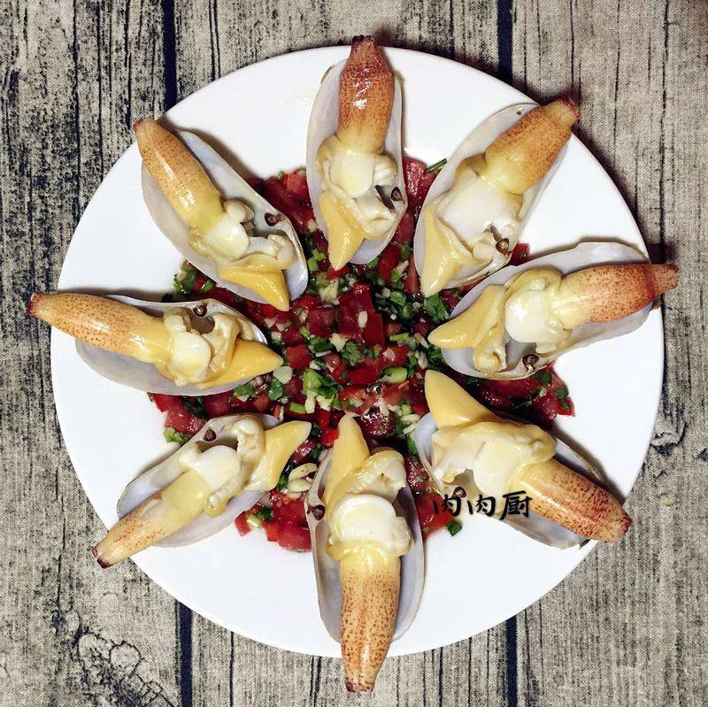 4:煮好的象拔蚌的课像图片这样开了就可以了!!