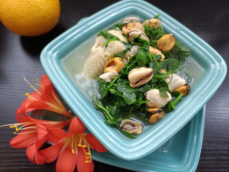 贻贝豌豆尖鸡汤