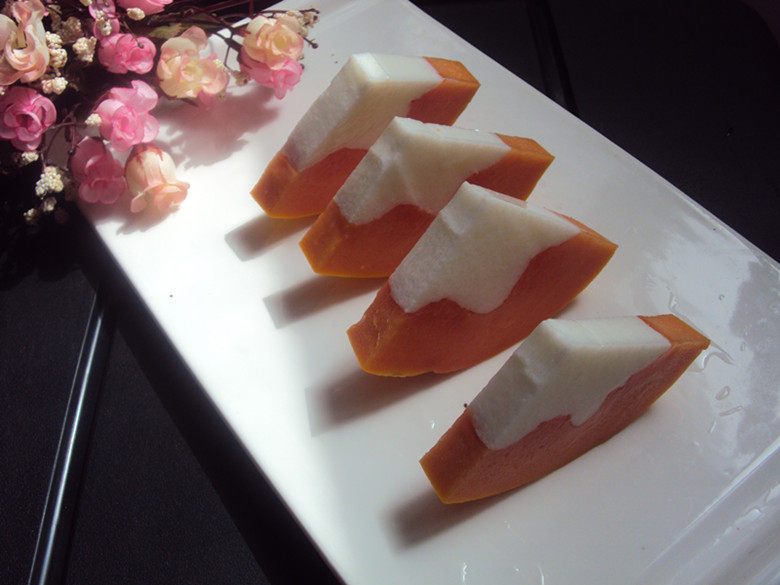 这道甜品美味做法又简单~尤其这样处理木瓜后~有种不同的感受哦~嘿嘿!~最后预祝亲们成功!