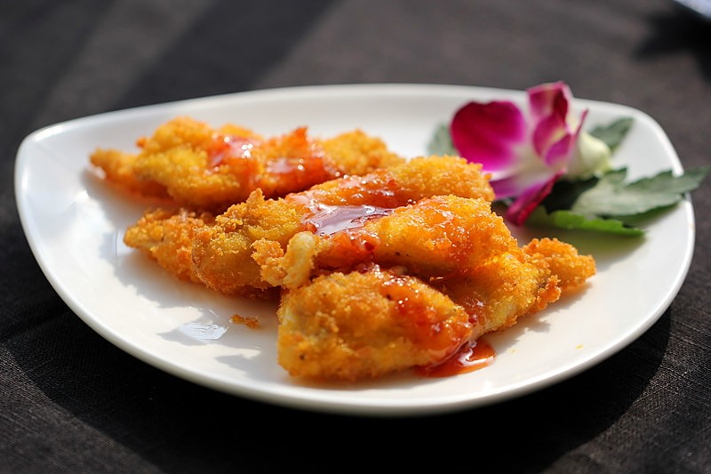 炸好的鱼柳可以配番茄酱、也可以蘸泰式甜辣酱,什么都不蘸也很好吃。