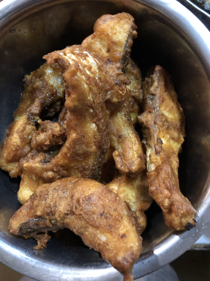 2:鱼块一块一块放入油锅中炸。