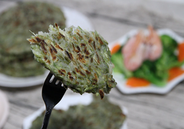 10:煎好的槐花饼盛出,趁热食用味美清甜。