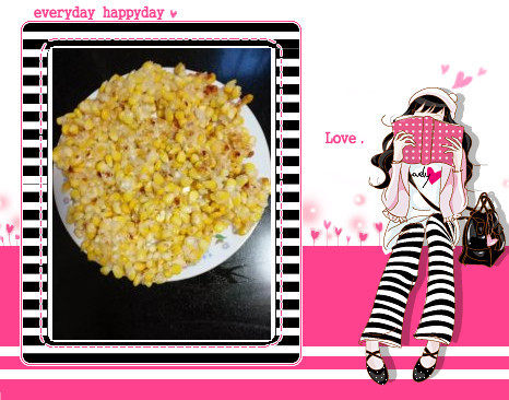 1:玉米,新鲜的玉米,煮熟,取出颗粒,我是事先取好,放冰箱,随时想吃都可以