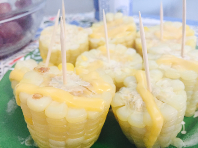 6:将玉米加上芝士条,放入微波炉放5分钟