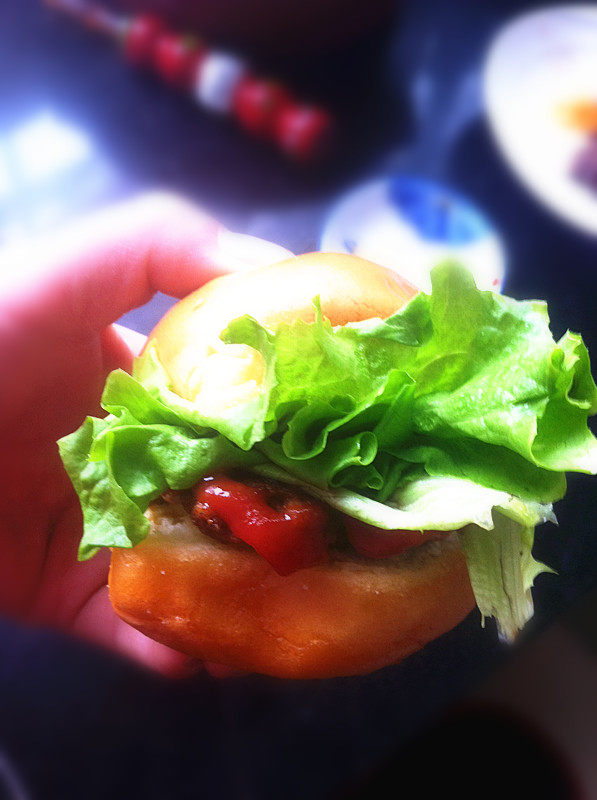 5:不粘锅加点油,放上圆形的猪肉饼,煎熟备用