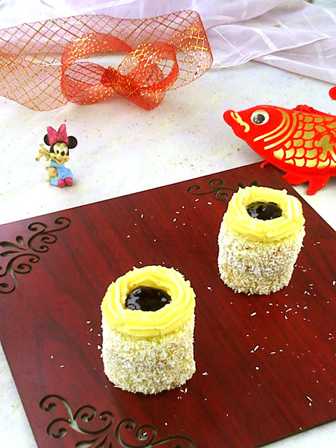 19:美味、可口的椰蓉果酱蛋糕就做好啦;