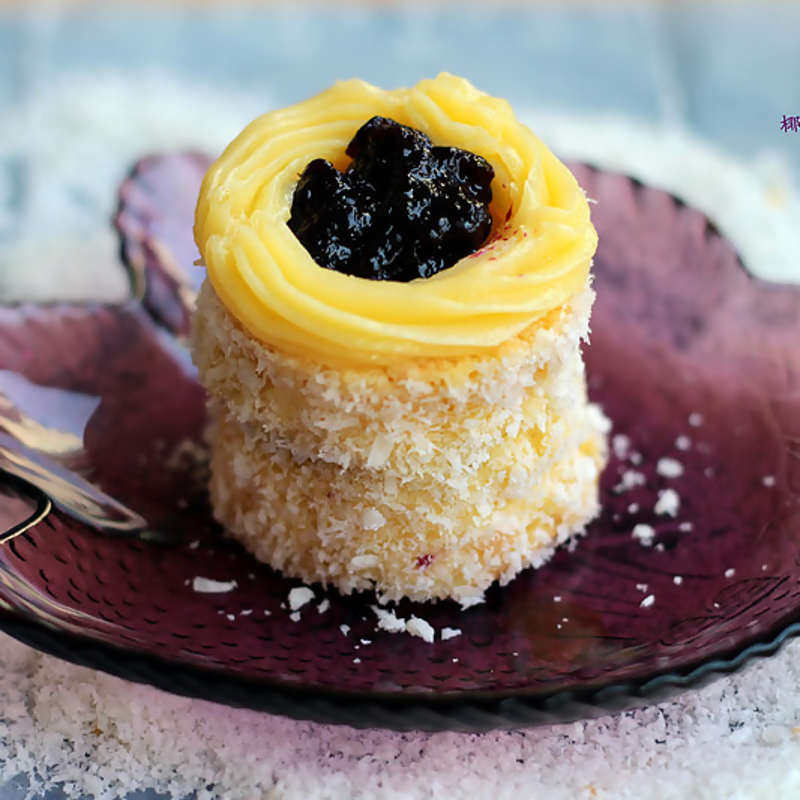椰蓉适量(表面装饰);黄油80克;糖粉35克;自制蓝莓果酱适量;