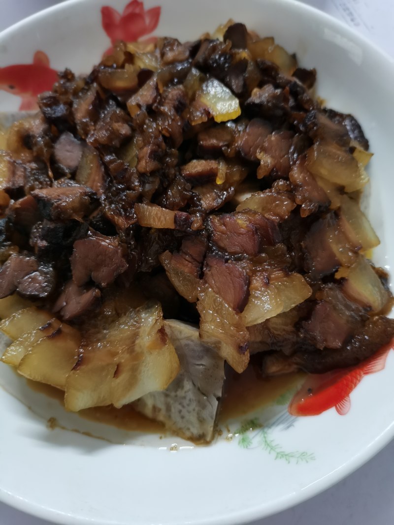 7:这样一道带着浓郁的腊肉香味的蒸芋头就完成了。