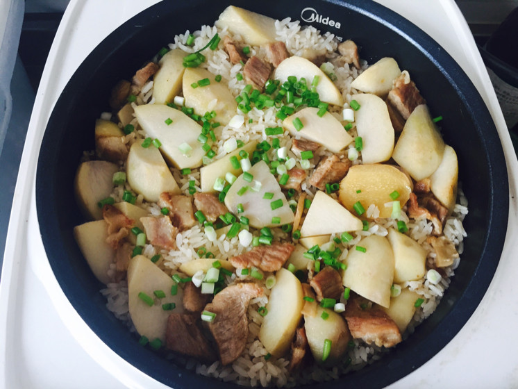 9:把米饭芋头都盛出装进电饭煲或者压力锅都可以