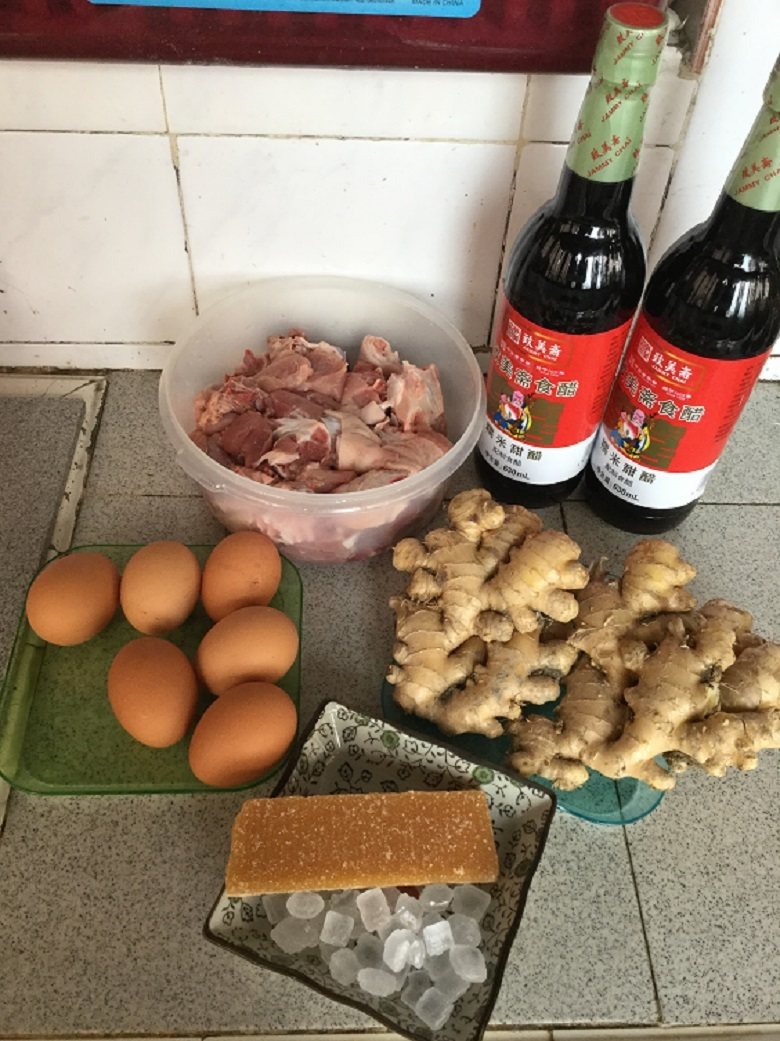 姜2.5斤;美味鲜白醋3支;猪手1只;美味鲜甜醋2支;鸡蛋10只;