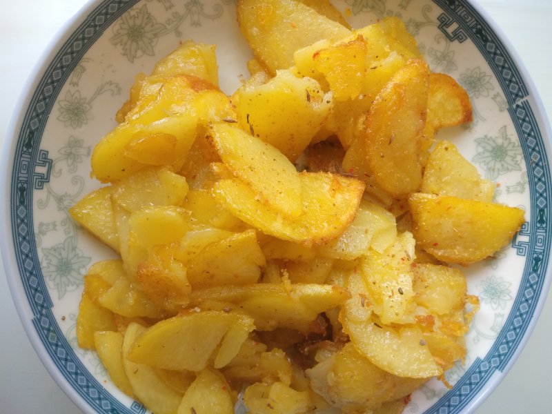 炒土豆不同于炖土豆,需要将多余的淀粉冲洗掉。这样炒出为脆,且操作时不粘锅。最近喜欢用姜粉,配肉配菜都挺好呢,出味儿还暖胃。