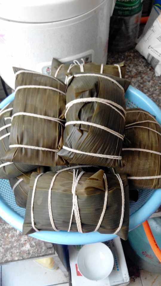 6:包粽子了。包好了,水烧开再放粽子下去煮,煮熟即可。捞出。来吃啦