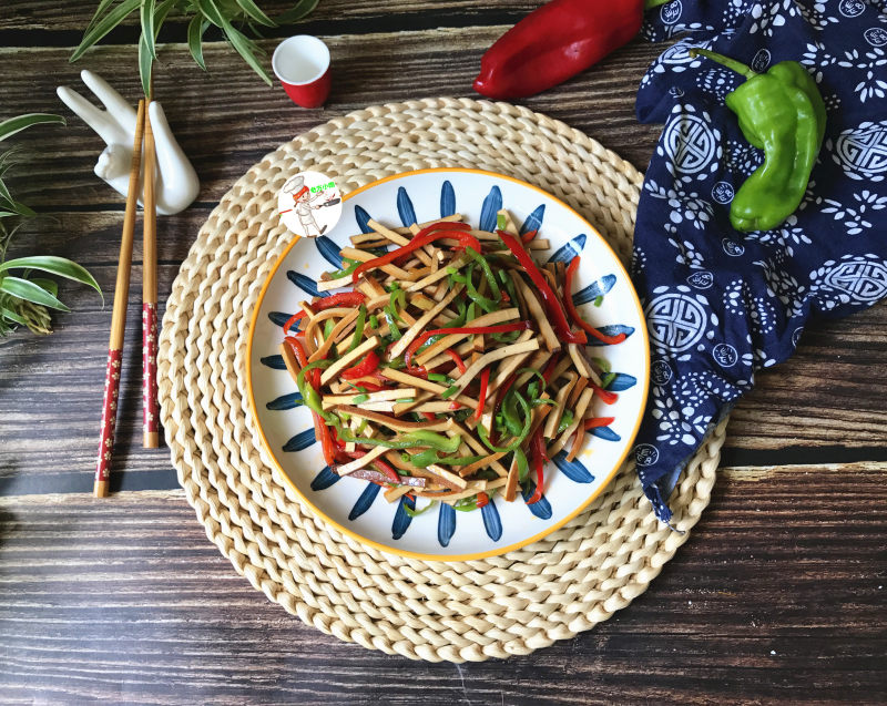5:大火翻炒,把辣椒丝炒软、断生即可盛出。