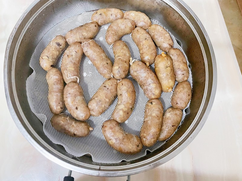 14:蒸好的香肠,晾凉后可以冰箱冷藏或者冷冻,早上蒸两根做早餐。