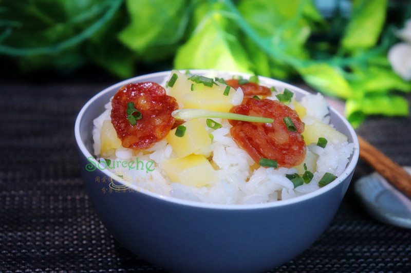 糯米200克;大米100克;土豆3个;香肠150克;