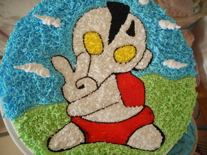 19:用奶油加色素,调出要的颜色,涂上衣服粉色,边缘也涂上黄色