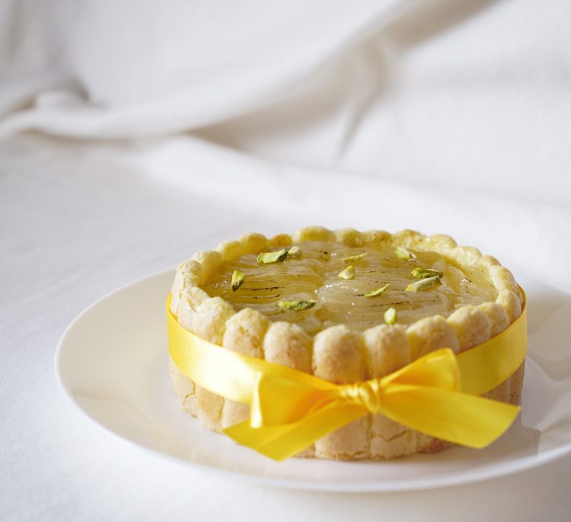 11:将手指饼干摆入在慕斯圈内做成围边,将蛋糕底片修成15cm,然后放入慕斯圈底部,将红茶糖浆用毛刷刷在蛋糕底上;